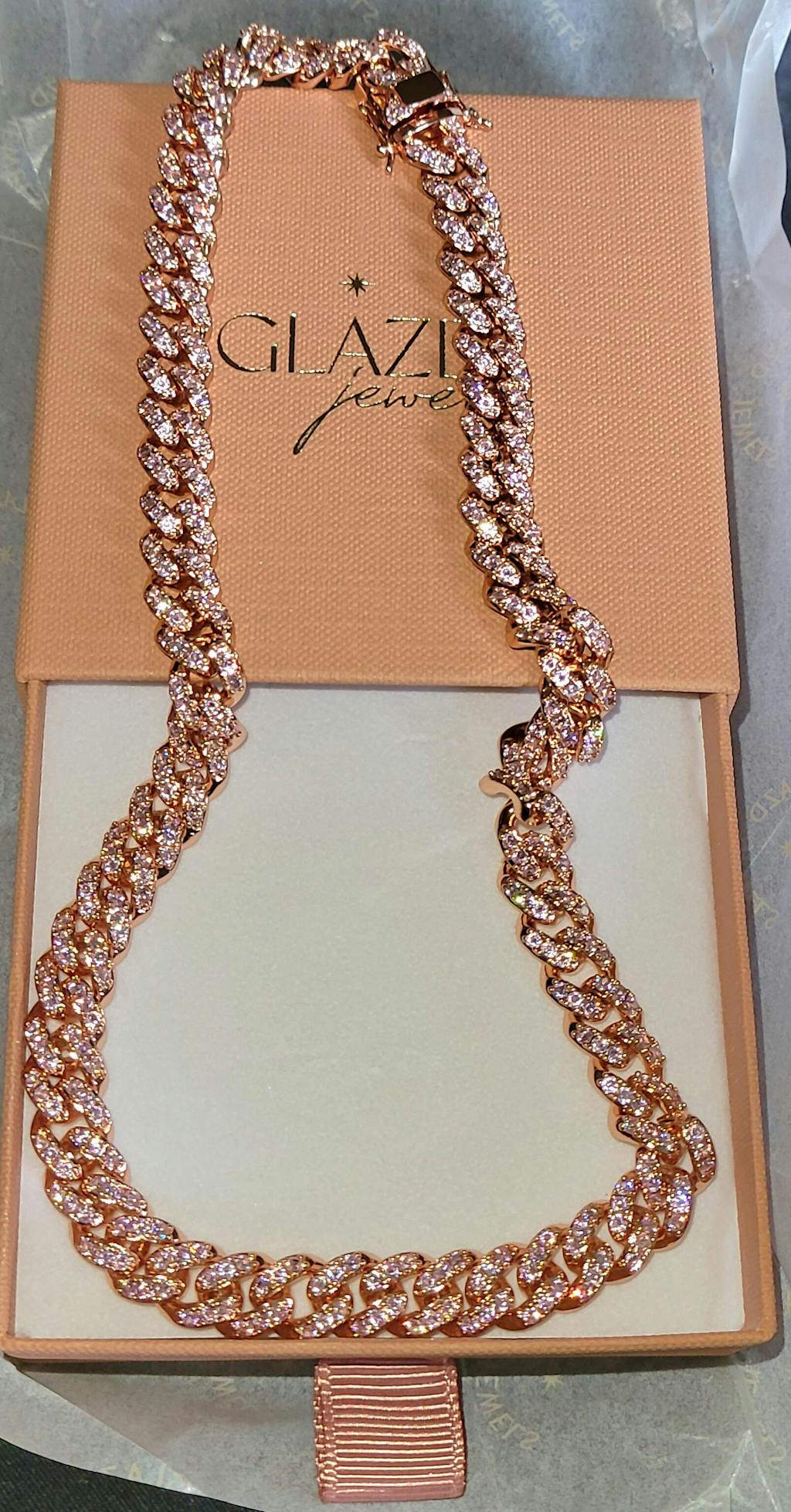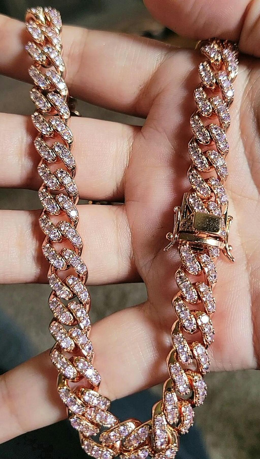 Let your inner Barbie shine with our gorgeous pink Cuban. High quality pink stones inlayed on a gold plated Cuban chain. Available in two 2 lengths 14" & 16".
